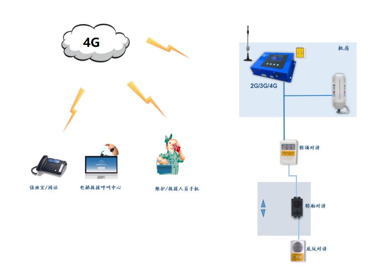 010-83528568Système de communication d'ascenseur utilisant la technologie sans fil 4G. Le système élimine les limitations des connexions filaires, permet une communication à distance pratique et prend en charge les appels d'urgence, les rappels par SMS et les fonctions de surveillance des équipements.